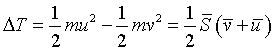 Заменив S его значением S = m ( u − v ) для приращения кинетической энергии, получаем