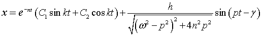 . Общее решение этого уравнения имеет вид x0 = C1·cos ω t + C2·sin ω t. Вводя обозначения C1 = a·sin β, C2 = a·cos β общее решение для x0 можно записать в виде x0 = a·sin (ω t + β). Частное решение