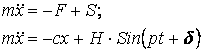 где Н, p и δ – некоторые данные постоянные числа. Силу F, стремящуюся вернуть точку М в положение равновесия О, называют иногда восстанавливающей силой, а силу S – возмущающей силой. Дифференциальное уравнение движения точки М имеет в этом случае следующий вид: