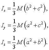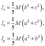 Jxx = Σ m i·(yi² + zi²), Jyy = Σ m i·(xi² + zi²), Jzz = Σ m i·(xi² + yi²) - осевые моменты инерции. Jo = Σ m i·(xi² + yi² + zi²)- полярный момент инерции.