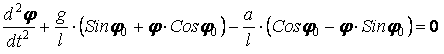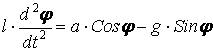 или m·l·ε = m·a·cos φ - m·g·sin φ, m·l·ω² = N - m·a·sin φ - m·g·cos φ. Первое уравнение примет вид
