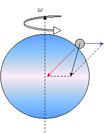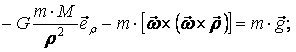 Сила тяжести m g представится как равнодействующая силы тяготения FH и центробежной силы инерции переносного движения Фе: m g = FH + Фе