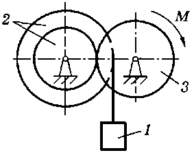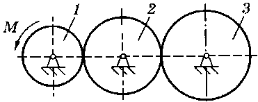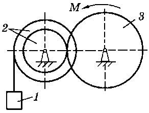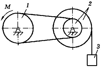 M = 90 H·м, m1 = 10 кг, m2 = 20 кг, m3 = 50 кг, R1 = 20 см |