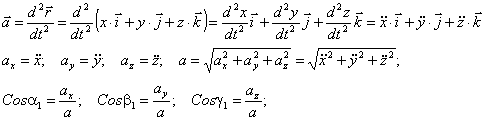 Ускорение точки в прямоугольных декартовых координатах