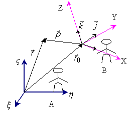 Движение точки М относительно (наблюдателя А) неподвижной системы А называется абсолютным. Движение точки М относительно наблюдателя В (подвижной системы В) называется относительным. Движение места, где находится в данный момент времени точка М относительно неподвижной системы А, называется переносным.