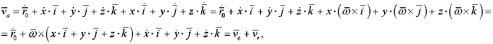 r = r0 + x·i + y·j + z·k. (1)Дифференцируя последнее соотношение (1) по времени, получим соотношение для абсолютной скорости в сложном движении точки