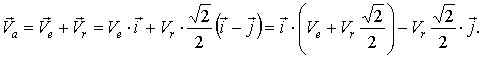 Используя найденные значения относительных скоростей V1 и V2, получим для скорости ветра