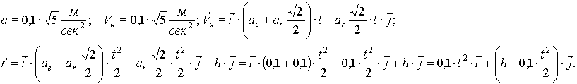 м/сек ². Начальное положение точки х = 0 и у = h. Определить абсолютные скорость и ускорение точки, а так же траекторию её движения.