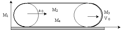 П р и м е р 3. Гусеничная машина движется со скоростью V0 и ускорением а0. Определить скорость и ускорение точек М1, М2, М3, М4 точек гусеницы (рис. 1).