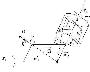 Обозначим rB = OB радиус-вектор точки В, проведенный из точки пересечения осей Оz1 и Оz2 в точку В. Тогда относительная скорость v rB по формуле Эйлера равна: