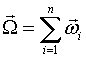 . Абсолютная угловая скорость Ω равна главному вектору системы векторов угловых скоростей всех данных вращений. Вектор Ω приложен в точке пересечения всех ωi.