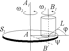 Плоское движение представляет собой непрерывную последовательность мгновенных вращений вокруг мгновенных центров вращения для различных моментов времени. Покажем, что мгновенный центр вращения подвижной плоскости основания цилиндра находится на прямой, соединяющей обе оси вращения, между осями и на расстояниях от осей, обратно пропорциональных соответствующим угловым скоростям.