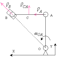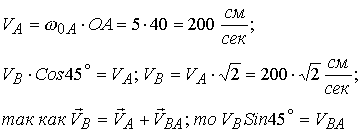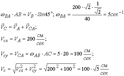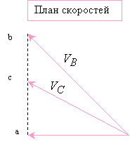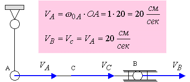 П р и м е р 2. OA = 20 см, АВ = 50 см, АС = 25 см. Найти скорости точек ''В'' и ''С''.