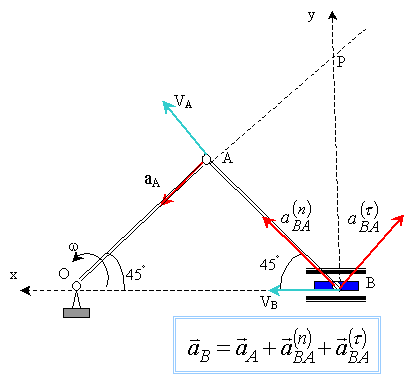 Абсолютное ускорение aB любой точки ''В'' плоской фигуры в каждый данный момент времени равно геометрической сумме двух ускорений: ускорения произвольно выбранного полюса и ускорения точки ''В'' в её вращении вместе с плоской фигурой вокруг этого полюса. Окончательно, формула сложения ускорений точек тела в плоско - параллельном движении будет иметь вид