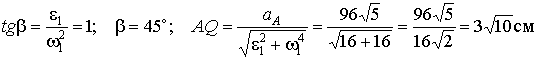 Если в данный момент времени задано ускорение aА какой – либо точки плоской фигуры, известны ω и ε, то положение мгновенного центра ускорений определяется следующим образом: