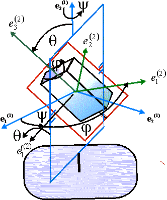 ≈ const. Использование углов Эйлера удобно также в случае, когда есть две оси, одна из которых неподвижна в базисе е(1),ругая является неподвижной в теле.