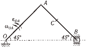 | 10 |  | | ОА | АВ | АС | ωOA, рад/с | εОА, рад/с2 | | 25 | 80 | 20 | 1 | 2 |