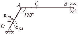 | 13 |  | | ОА | АВ | АС | ωOA, рад/с | εОА, рад/с2 | | 25 | 55 | 40 | 2 | 4 |