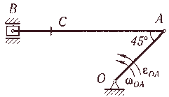 | 21 |  | | ОА | АВ | АС | ωOA, рад/с | εОА, рад/с2 | | 30 | 60 | 15 | 3 | 8 |