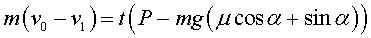28.3. Поезд массы 4·105 кг входит на подъем i = tg α = 0,006 (где α — угол подъема) со скоростью 15 м/с. Коэффициент трения (коэффициент суммаркого сопротивления) при движении поезда равен 0,005. Через 50 с после входа поезда на подъем его скорость падает до 12,5 м/с. Найти силу тяги тепловоза.