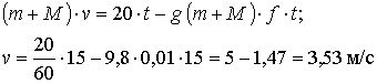 28.11. Мальчик массы 40 кг стоит на полозьях спортивных саней, масса которых равна 20 кг, и делает каждую секунду толчок с импульсом 20 Н·с. Найти скорость, приобретаемую санями за 15 с, если коэффициент трения f = 0,01.