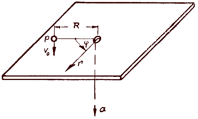 Ответ: В полярных координатах (если принять отверстие за начало координат и угол φо равным нулю):