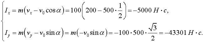 Ответ: Проекции импульса равнодействующей: Sx = - 5000 Н·с, Sy = - 43300 Н·с.