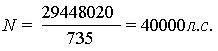 Ответ: 40 000 л. с. = 29,4 МВт. Решение.