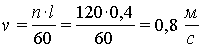 v = ω R = 120·2 π·0,3/60 = 1,2 π;