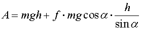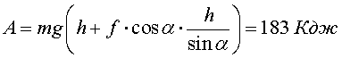 A = m g (sin α + μ cos α )·l = 20·9,8· (0,5 + 0,01·0,866 )·6 = 598 Дж