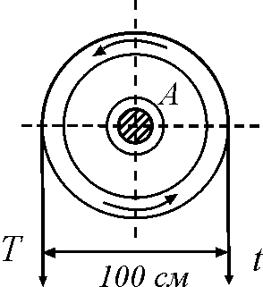 29.16. Посредством ремня передается мощность 14,71 кВт. Радиус ременного шкива 0,5 м, угловая скорость шкива соответствует 150 об/мин. Предполагая, что натяжение Т ведущей ветви ремня вдвое больше натяжения t ведомой ветви, определить натяжение T u t.