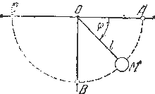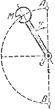30.14. Главную часть установки для испытания материалов ударом составляет тяжелая стальная отливка М, прикрепленная к стержню, который может вращаться почти без трения вокруг неподвижной горизонтальной оси О. Пренебрегая массой стержня, рассматриваем отливку М как материальную точку, для которой расстояние ОМ = 0,981 м. Определить скорость v этой точки в нижнем положении В, если она падает из верхнего положения А с ничтожно малой начальной скоростью.