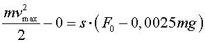30.10. Железнодорожная платформа имеет массу m = 6 т и при движении испытывает сопротивление от трения в осях, равное 0,0025 ее веса. Рабочий уперся в покоящуюся платформу и покатил ее по горизонтальному и прямолинейному участку пути, действуя на нее с силой F0 = 250 Н. Пройдя s = 20 м, он предоставил платформе катиться самой. Вычислить, пренебрегая сопротивлением воздуха и трением колес о рельсы, наибольшую скорость платформы во время движения, а также весь путь s, пройденный ею до остановки.