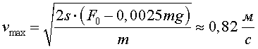 Ответ: vmax = 0,82 м/с, s = 34 м. Решение.