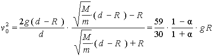 30.26. Найти, с какой скоростью v0 нужно выбросить снаряд с поверхности Земли по направлению к Луне, чтобы он достиг точки, где силы притяжения Земли и Луны равны, и остался в этой точке в равновесии. Движением Земли и Луны и сопротивлением воздуха пренебречь. Ускорение силы тяжести у поверхности Земли g = 9,8 м/с2. Отношение массы Луны и Земли m: М = 1 : 80; расстояние между ними d = 60 R, где считаем R = 6000 км (радиус Земли).