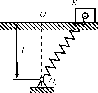 30.1. Тело Е, масса которого равна m, находится на гладкой горизонтальной плоскости. К телу прикреплена пружина жесткости с, второй конец которой прикреплен к шарику O1. Длина недеформированной пружины равна l0; OO1 = l. В начальный момент тело Е отклонено от положения равновесия О на конечную величину ОЕ = а и отпущено без начальной скорости. Определить скорость тела в момент прохождения положения равновесия.