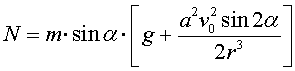 31.20. Тяжелая точка М массы m движется по внутренней поверхности круглого цилиндра радиуса r. Считая поверхность цилиндра абсолютно гладкой и ось цилиндра вертикальной, определить давление точки на цилиндр. Начальная скорость точки равна по величине v0 и составляет угол α с горизонтом.