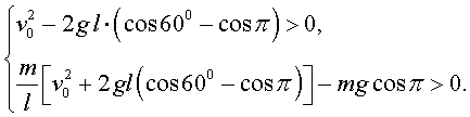 .31.2. Сохраняя условия предыдущей задачи, кроме величины скорости vo найти, при какой величине скорости груз будет проходить всю окружность.