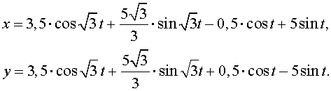 Ответ: х = 4 соs 2 t, y = 2 соs 2t, z = 4 соs t. Траектория – линия пересечения двух параболических цилиндров х = z2/2 − 4 и y = z2/4 − 2. Это – парабола, лежащая в плоскости х = 2у. Движение по траектории осуществляется на участке от точки х = 4 см, y = 2 см, z = 4 см до точки х = 4 см, у = 2 см, z = 4 см.