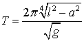 Конический маятник имеет длину l и описывает в горизонтальной плоскости окружность радиуса а. Определить период обращения конического маятника.