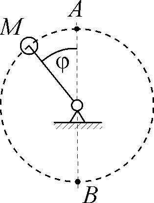 0 = 0. Определить, при каком соотношении начальных условий точка М будет описывать окружность в горизонтальной плоскости и каково будет время обращения точки М по этой окружности.
