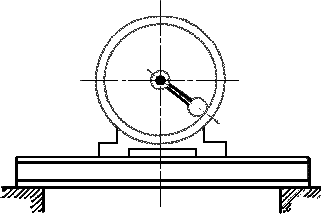 35.10. Электрический мотор массы М1 установлен без креплений на гладком горизонтальном фундаменте; на валу мотора под прямым углом закреплен одним концом однородный стержень длины 2 l и массы М2, на другой конец стержня насажен точечный груз массы М3; угловая скорость вала равна ω. Определить: