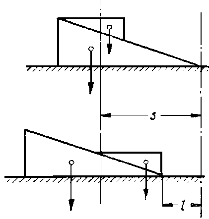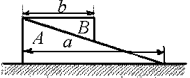 35.17. На однородную призму A, лежащую на горизонтальной плоскости, положена однородная призма В; поперечные сечения призм – прямоугольные треугольники, масса призмы А втрое больше массы призмы В. Предполагая, что призмы и горизонтальная плоскость идеально гладкие, определить длину l, на которую передвинется призма А, когда призма В, спускаясь по А, дойдет до горизонтальной плоскости.