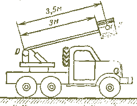 35.21. Подвижной поворотный кран для ремонта уличной электросети установлен на автомашине массы 1 т. Люлька К крана, укрепленная на стержне L, может поворачиваться вокруг горизонтальной оси О, перпендикулярной плоскости рисунка. В начальный момент кран, занимавший горизонтальное положение, и автомашина находились в покое. Определить перемещение незаторможенной автомашины, если кран повернулся на 60°. Масса однородного стержня L длины 3 м равна 100 кг, а люльки К – 200 кг. Центр масс С люльки К отстоит от оси О на расстоянии ОС = 3,5 м. Сопротивлением движению пренебречь.