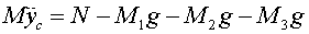 Ответ: 1) Ry = (M1 + M2) g; 2) точка C1 совершает свободные колебания по закону