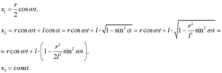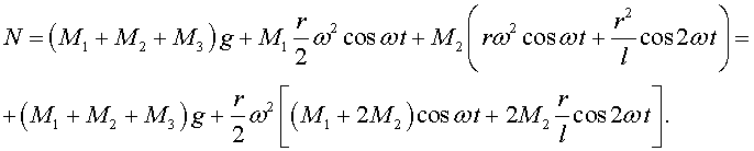 35.9. Ножницы для резки металла состоят из кривошипного ползунного механизма ОАВ, к ползуну В которого прикреплен подвижный нож. Неподвижный нож укреплен на фундаменте С. Определить давление фундамента на грунт, если длина кривошипа r, масса кривошипа M1, длина шатуна l, масса ползуна В с подвижным ножом М2, масса фундамента С и корпуса, D равна М3. Массой шатуна пренебречь. Кривошип ОА, равномерно вращающийся , с угловой скоростью ω, считать однородным стержнем.