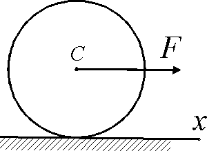35.4. Колесо катится со скольжением по горизонтальной прямой под действием силы F, изображенной на рисунке.