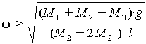 установлен на балке жесткость которой равна с. На вал мотора насажен груз массы М2 на расстоянии l от оси вала. Угловая скорость мотора ω = const. Определить амплитуду вынужденных колебании мотора и критическое число его оборотов в минуту, пренебрегая массой балки и сопротивлением движению.