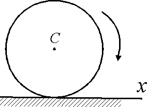 35.5. Колесо катится со скольжением по горизонтальной прямой под действием приложенного к нему вращающего момента. Найти закон движения центра масс С колеса, если коэффициент трения скольжения равен f. В начальный момент колесо находилось в покое.