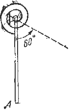 38.15. Однородный стержень ОА длины l и массы М может вращаться вокруг горизонтальной неподвижной оси О, проходящей через его конец перпендикулярно плоскости рисунка. Спиральная пружина, коэффициент упругости которой равен с, одним концом скреплена с неподвижной осью О, а другим — со стержнем. Стержень находится в покое в вертикальном положении, причем пружина при этом не деформирована. Какую скорость надо сообщить концу А стержня для того, чтобы он отклонился от вертикали на угол, равный 60°?